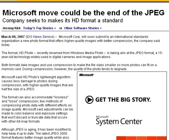 마이크로소프트(MS)가 15년간 이미지 포맷 분야를 주도하고 있는 JPEG와 한판승부를 벌일 모양입니다.