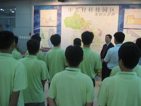 연구원들은 위층으로 올라가 중관촌과기원구의 발자취와 현황을 담은 비디오도 시청했다. 이어 과기원구 관리위원회측 안내를 받으며 단지 내 벤처기업 두 곳을 둘러봤다.