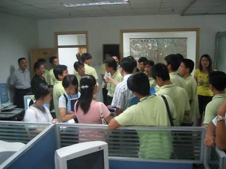북측 연구원들이 중관촌과기원구내 한 통신장비 제조회사를 방문해 동기식 CDMA 기술에 대한 설명을 듣고 있다. <사진 온기홍>