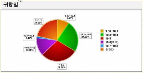 귀향일 : 추석 전날(10월 5일, 29.5%)