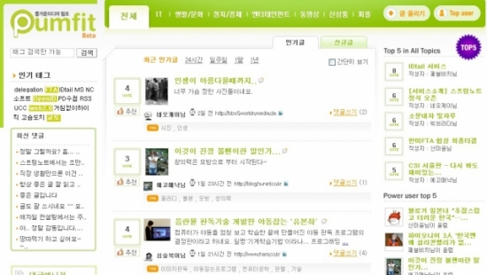 우선 펌핏(pumfit)부터 살펴보자. 이 서비스가 공개된 것은 지난 3월26일. 펌핏은 좋은 글을 수면위로 퍼올린다는 의미란다. 즐거운 미디어펌프를 지향하고 있다. 소셜 미디어와 가벼운 토론 플랫폼을 비전으로 삼고 있다는데, 겉으로 비춰지는 이미지는 '안철수판 딕닷컴'이다.