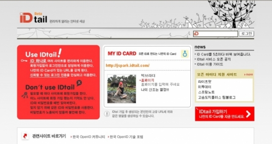 'ID테일'은 지난 4월2일 문을 연 오픈ID 인증 서비스다. 오픈ID란 동일한 ID로 다양한 웹사이트를 자유롭게 로그인 할 수 있는 통합 인증 기술로 요즘 국내외 인터넷 업계에서 많은 주목을 받고 있다.
