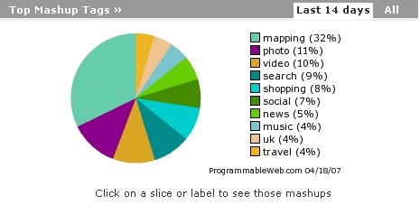 지도, 사진, 비디오, 검색, 쇼핑 관련 매시업들이 인기가 많다는 것을 금방 알 수 있다.