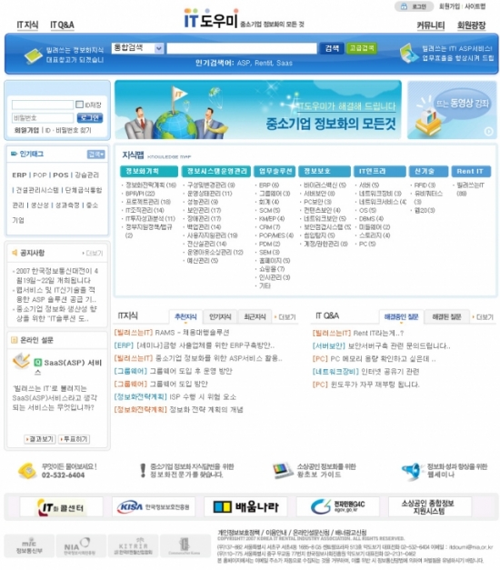 IT도우미(정보화 지식포털 서비스)는 중소기업이 정보화를 추진하는 과정에서 필요한 지식정보를 제공하는 사이트입니다. 정보통신부에서 추진해온 중소기업 정보화 사업의 일환으로 구축된 것이구요, 아직은 많이 부족하지만 다양한 피드백을 통해 개선해 나갈계획입니다.
