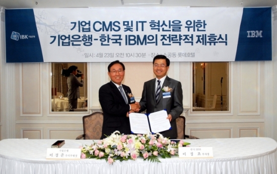 기업은행(은행장 강권석)과 한국IBM(대표 이휘성)은 23일 오전 소공동 롯데호텔에서 CMS 및 IT 혁신을 위한 전략적 업무제휴 조인식을 갖고 SMB 공동사업을 위한 협력과 지원을 확대해 나가기로 했다고 발표했다.