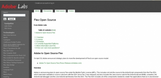 정말 흥미로운 뉴스다. 어도비시스템즈가 리치 인터넷 애플리케이션(RIA) 개발 플랫폼인 플렉스를 연말까 오픈소스화하겠다고 선언했다. 라이선스는 모질라 퍼블릭 라이선스를 사용하게 된다.