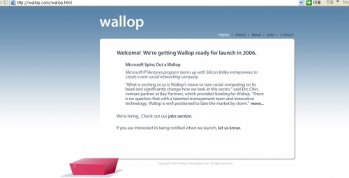 월롭(www.Wallop.com)은 마이스페이스, 페이스북 등 지인 네트워크 사이트와 경쟁할 수 있는 서비스를 선보인다. 월롭은 마이크로소프트 연구 부서에서 분사한 기업이어서 특히 주목된다. 월롭 서비스는 마이스페이스보다 개인화된 기능들이 많이 추가될 것이라고 AP통신은 전했다.