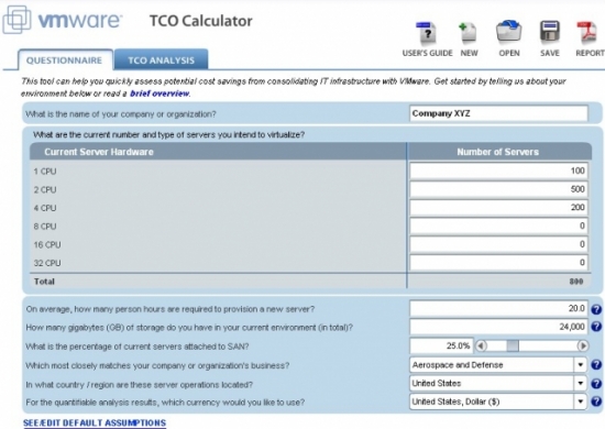 잠재적 비용 절감에 관한 세부 보고서를 함께 제공하는 VM웨어 TCO 계산기는 웹사이트에서 무료로 이용할 수 있다. 몇가지 사항만 입력하면 잠재적으로 얼마를 절감할 수 있는지 예상해주는 세부 보고서를 볼 수 있다. 기업들은 TCO계산기를 사용한 뒤 그 결과를 기반으로 가상 인프라에 대한 로드맵을 제공하는 가상화 평가를 요청할 수 있다.