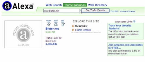 블로터닷넷이 출범한지 20여일 남짓 지났다. 혹시나 하는 마음에 트래픽 랭킹 사이트인 http://www.alexa.com/에 접속하여 조심스런 마음으로 bloter.net 을 타이핑 하였다.