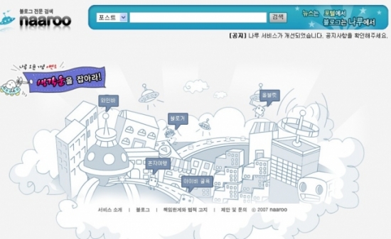 블로그 검색을 표방하는 검색 서비스 나루가 지난 15일 블로고스피어에 모습을 드러냈습니다. 네이버가 들었다놨다하는 검색 시장을 상대로 "블로그검색 만큼은 우리가 최고다"라는 것을 기치로 내건 전문 검색 서비스가 등장한 것입니다.