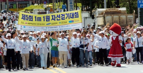 1m 1원 자선걷기 대회는 참가자들이 총 5km의 거리 행진을 통해, 1m당 1원씩, 1인당 총 5천원을 불우이웃돕기에 기부하는 경기도 내 최대 범시민 나눔 문화 실천 행사로 이날 행사는 삼성전자, 대한적십자사, 경인일보, 수원방송이 공동 주최했다.