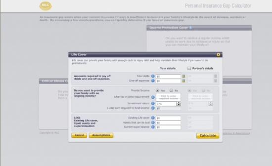 MLC Insurance Gap Calculator URL: http://www.mlc.com.au/InsuranceGapCalculator/