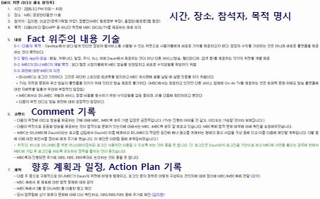 2. 회의 때 발언한 내용을 Fact 위주로 기술한다.