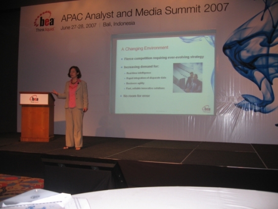 인프라 소프트웨어 업체 BEA시스템즈가 아태지역 기자와 애널리스트들을 초청한 가운데, 27~28일 양일에 걸쳐 인도네시아 발리에서 'APAC 애널리스트&미디어 서밋2007' 을 열고 있다.