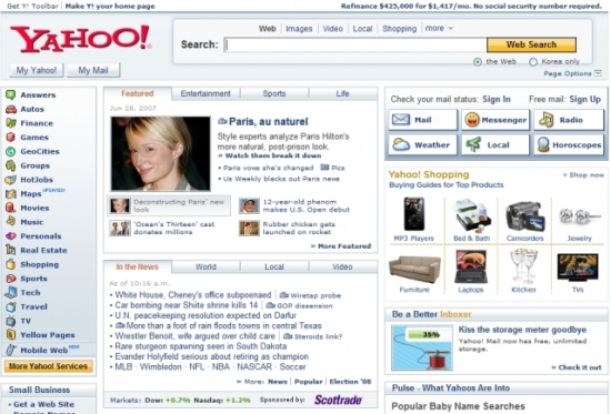 여전히 야후는 세계 최대의 포털 자리에 앉아있다. 직원 1만 2,000여 명, 연 매출 60억 달러의 거인이다. 하지만 실적 부진의 늪에 빠져있다는 게 문제다. 마이크로소프트에게 인수될 것이라는 얘기가 나돌 정도다.