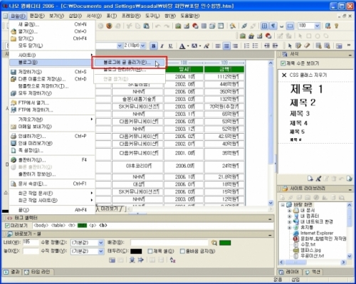 ▲국내 SW 가운데는 '나모 웹에디터 2006'이 원격 블로깅 기능을 지원한다.