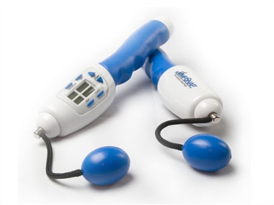 줄 대신 작은 추가 달린 줄 없는 줄넘기 점프스냅. 손잡이에 내장된 디지털 카운터, 타이머, 칼로리 계산기로 운동 결과를 간편하게 확인할 수 있다(사진=JumpSnap)