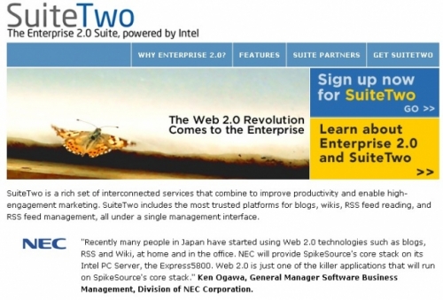 세계 최대 반도체 업체인 인텔이 인터넷 소프트웨어 업체들과 손잡고, 웹2.0 기반 협업 소프트웨어 패키지 '스위트투'(suitetwo)를 2007년초에 선보인다는게 바로 그것이다.