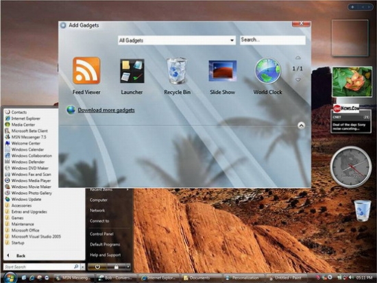 비스타에 포함될 가젯은 가로가 길어지는 Wide 디스플레이 시장을 겨냥해 좌우측의 여백을 정보 제공의 창으로 활용할 수 있다. 물론 사이드바에 위치한 가젯들은 데스크탑(바탕화면)으로 독립적으로 분리해서 위치시킬 수 있다. 가젯은 데스크탑에서만 사용할 수 있는 것은 아니다. WWW 브라우저에 임베디드해서 제공하는 것도 가능하다. 라이브닷컴이나 스타트닷컴 등의 사이트에서 가젯을 사용할 수 있다. 마지막으로 가젯은 PC가 아닌 모바일 디바이스에서도 활용이 가능하다. 이렇게 가젯은 PC와 WWW 서비스 그리고 모바일 기기를 넘다들며 플랫폼에 종속되지 않고 사용이 가능하다.