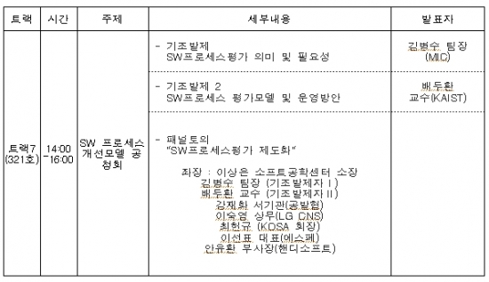 30일 10시 30분부터 코엑스 컨퍼런스룸 330호에서 열리는 이 토론회는 'SW산업 지난 10년의 성과와 전망'을 주제로 관련분야 종사자 500여여명이 함께할 예정이다. 각 분야 전문가들이 참석하는 토론이니 만큼 보여주기식 행사 보다는 허심탄회한 내용들이 발표될 것으로 전망된다.