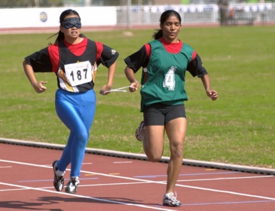 (사진 설명 : 앞이 안보이지만 선수들은 함께 서로의 굳은 신뢰의 끈을 잡고 트랙을 맹렬히 질주하고 있다. 무엇보다 사진의 하이라이트는 팀워크로부터 나오는 특별한 시너지가 마치 모든 이들을 위한 사회의 참된 정신을 표현하고 있다는 것이다)