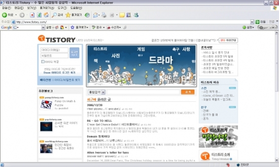 <그림> 오픈 베타 서비스와 함께 새 단장한 티스토리 초기화면.