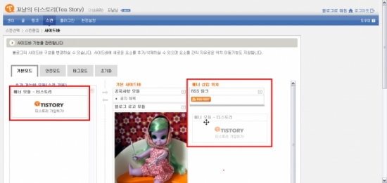 블로그 양 쪽의 메뉴 부분을 복잡한 스킨 편집 작업 없이도 자유롭게 디자인 할 수 있는 기능이다. 마우스의 드래그 & 드롭 (Drag & Drop) 기능을 이용해 원하는 구성 요소를 끌어다 놓기만 하면 메뉴에 추가되거나 삭제 된다. 블로그 카테고리, 태그 목록, 검색창, 각종 배너 등의 구성 요소를 자유자재로 가져다 꾸밀 수 있다.