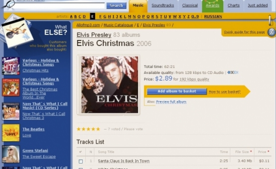 혹자는 "불법 사이트 아니냐?"고 반문할지 모르겠다. 그러나 AllofMP3.com은 러시아 법률을 준수하는 합법적인 사이트다. 미국서는 서비스를 제공하지 않는다.