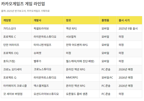 비게임사업 정리와 R&D 재편을 마친 카카오게임즈는 확보한 자본을 IP 확보와 글로벌 신작 라인업 구축에 집중하고 있다. 2025년에만 4건의 퍼블리싱 계약을 체결하며 다장르 포트폴리오 확장에 속도를 냈다.