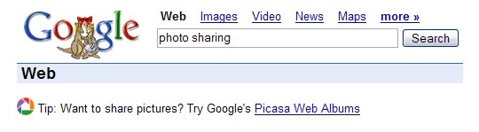 예를 들어보겠습니다. 구글 영문 검색에서 'photh sharing'이란 키워드를 입력하면 구글의 피카사 서비스를 추천하는 문구가 윗자리에 올라옵니다.