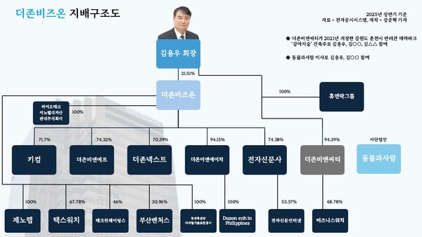 이들은 더존비즈온의 주요주주가 아니며 등기임원이나 실무보직을 맡은 적도 없다. 대신 강원 춘천에서 반려동물 테마파크 '강아지숲' 관련 사업을 운영하고 있다.