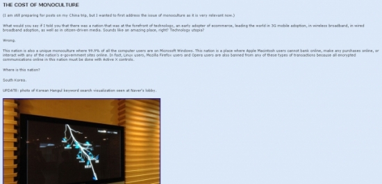 최근 윈도비스타 출시를 앞두고 우리나라에서 다시 한번 논란이 되고 있는 액티브X 문제를 비판적으로 바라보는 어느 외국 블로거의 글이다.