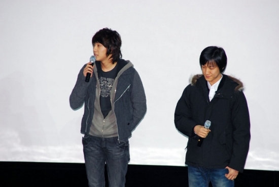 ▲사용자 관점에서 비스타에 대한 얘기를 하러나온 영화배우 지현우와 프로게이머 김정민. 지현우씨는 비스타의 엔터테인먼 트 기능에 높은 점수를 주더군요~