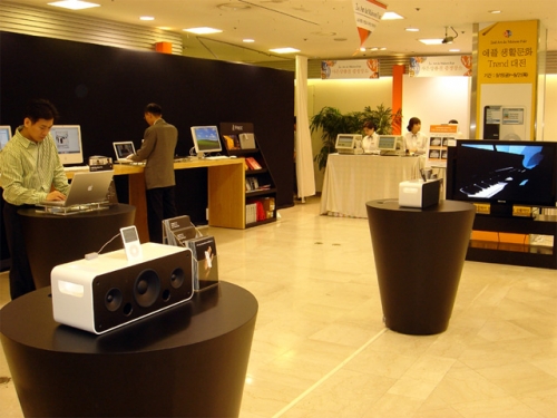 체험 마케팅에 인색하던 애플컴퓨터코리아가 드디어(?) 고객 체험 행사를 마련했다. 애플의 아이팟이나 맥 시리즈에 관심이 있던 고객들이라면 현대백화점 압구정점 5층에서 열리는 ‘애플 생활문화 트랜드 초대전’을 통해 눈으로 보고 직접 사용해볼 수 있다.