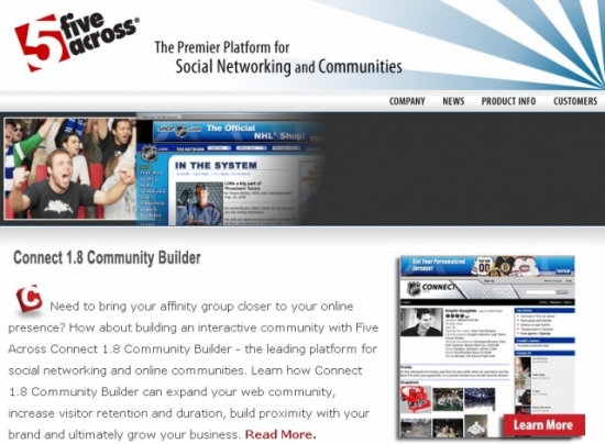 파이브어크로스는 기업들이 기존 웹사이트에 UCC, 오디오, 비디오, 사진 공유 기능 등을 추가할 수 있도록 지원해주는 업체다. 2003년 설립됐으며, 직원수는 11명이다. 지난해 내셔설하키리그(NHL) 소셜 네트워킹 사이트를 구축을 지원함으로써 관심을 불러일으켰다.