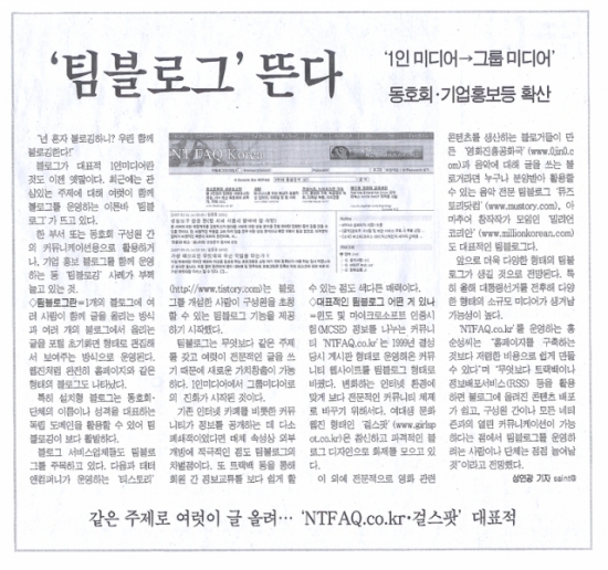 2. 인터넷 신문에 같이 게재되기 때문에, 인터넷 곳곳에 스크랩되는 효과를 노릴 수도 있다. 특히나 블로그의 경우 검색 결과에 잘 노출되기 때문에, 두고 두고 노출될 가능성이 높다.