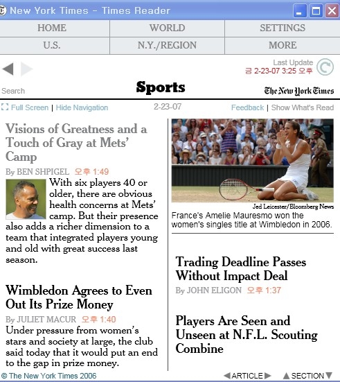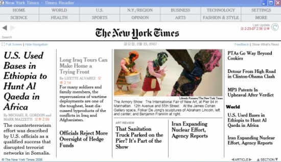 그래서 MS WPF기술에 기반한 뉴욕타임스 리더를 직접 깔아봤습니다. 타임스리더 내려받기